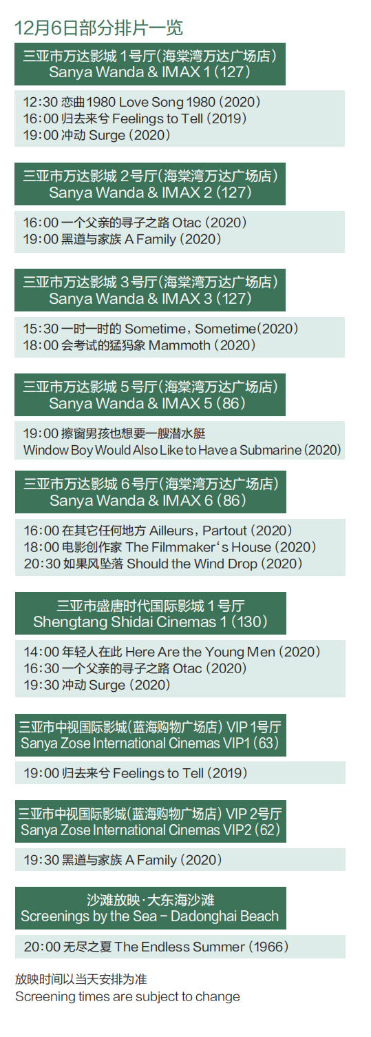 本屆電影節(jié)也延續(xù)了最具海島風(fēng)情的“沙灘放映”,展映包含《無盡之夏》《小島驚魂》《紫色正午》等與海島主題契合的經(jīng)典影片。