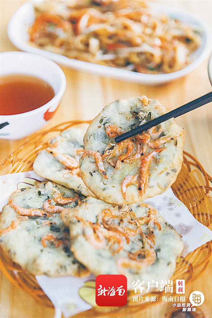 東方的蝦餅也是一大特色小吃。高海峰說,和臨高用韭菜搭配的做法不同,八所蝦餅用的是蔥花和小蝦,小蝦更易炸脆,可以整只吃下都不留渣,“而蝦和蔥結(jié)合,是大海和大地的文化糅合形成一種大自然的芳香!”他說。