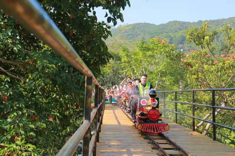 穿梭空中樂園,童話童趣童年樂。1月28日,海南島第一家空中有軌小火車項目在海南檳榔谷黎苗文化旅游區投入運營。這也是繼“熱帶風暴”“田野卡丁車”“飛林探巢”之后投放的第四個全新體驗項目,標志著檳榔谷景區轉型發展進入提速提質的關鍵階段。