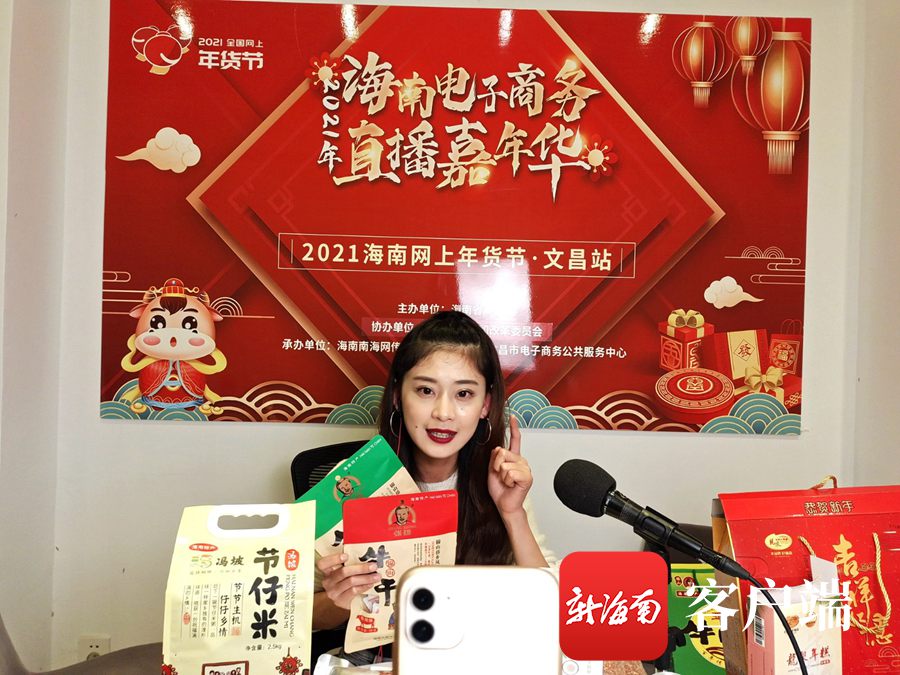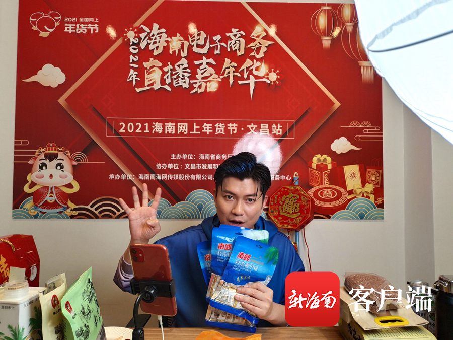 新海南客戶端、南海網、南國都市報2月2日消息(記者 吳興)“文昌錦山張雄牛肉干,在直播間下單,就能享超值福利,大家趕緊搶購啦?!?月1日晚,2021海南網上年貨節文昌分會場火熱開播,海南本土網紅海南瀟灑姐、麥意、七七、小象呈鮮、海南小立哥,在文昌市電子商務公共服務中心,為hellococo、椰嗨喃、張雄牛肉干、重興陳記、潮記文昌雞等海南品牌代言,攜具有濃濃年味的文昌年貨亮相直播間,還推出滿減優惠、抽獎互動、禮品贈送等福利,滿足居家群眾多元化的購物需求。