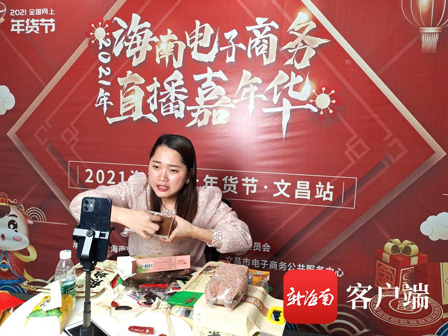 2月1日,2021海南網上年貨節·文昌站正式開播,文昌本地企業椰嗨喃、張雄牛肉干、重興陳記、五龍灣、潮記文昌雞等,為廣大網友呈上精選優惠的海南年貨。文昌錦山張雄牛肉干是擁有百年歷史的海南特色小吃,最初是作為華僑遠行必備食物干糧的牛肉干,后漸漸發展成為海南著名的小吃和旅游伴手禮。2月1日,海南本土網紅“麥意”為直播間的粉絲們帶來了張雄牛肉干牛年禮盒首發驚喜,一上線便開啟了拼手速秒殺模式,吸引了近6000人次觀看,銷售額超7000元。