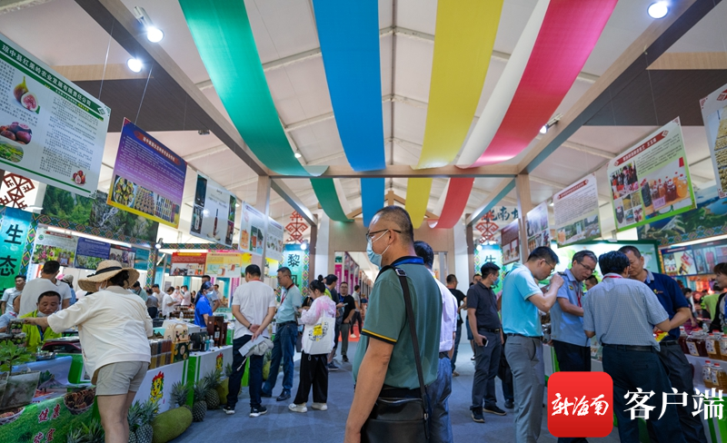 在開幕式現場,海南(瓊中)旅游美食與特色農產品展銷會作為活動一部分,展示了瓊中及海南各市縣特色鄉村旅游景區、景點、鄉村特色食品、特色旅游商品、助農產品、土特產、海南一鎮一品農副產品;活動通過展示、品嘗、銷售等形式展現海南旅游美食和農產品食材。
