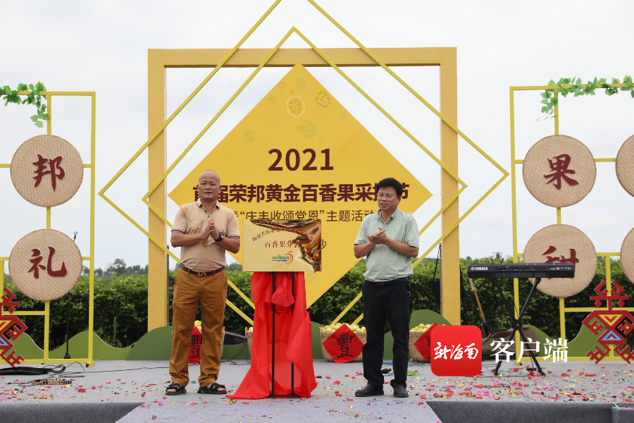 開幕式現(xiàn)場發(fā)布了榮邦黃金百香果的全新包裝禮盒,海南省農(nóng)業(yè)電子商務(wù)行業(yè)協(xié)會百香果分會也在現(xiàn)場成立揭牌。