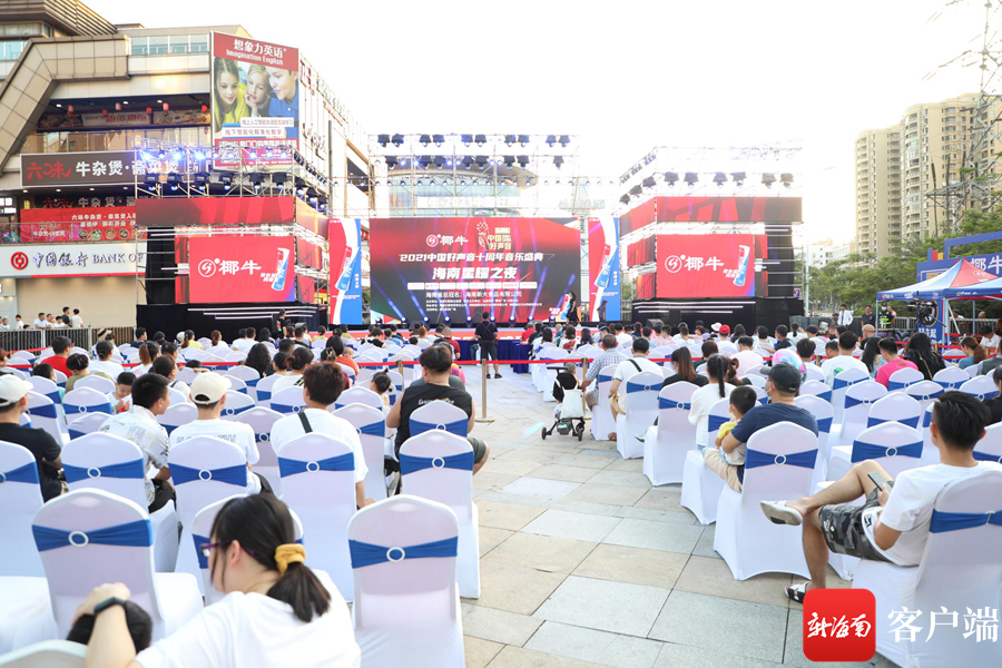 椰牛·2021“中國好聲音”十周年音樂盛典(海南)“星耀之夜”在海口新城吾悅廣場開唱。記者 吳興財 攝。