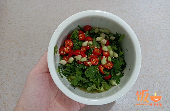 配料:蒜/小米椒/生抽/醋/鹽/糖/花生油/青檸檬