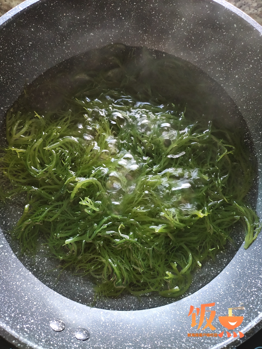2、鍋里燒開水,倒入海草煮1-2分鐘(視情況而定)