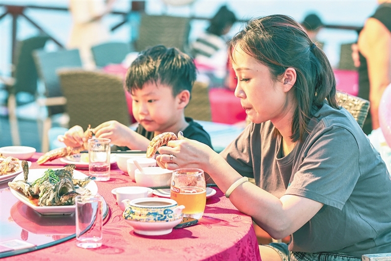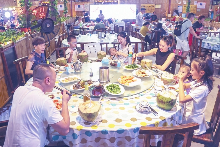 游客在東海龍宮海鮮城品嘗海鮮美食。 三亞日?qǐng)?bào)記者 陳聰聰 攝