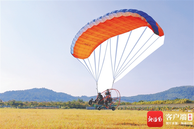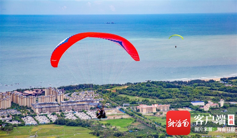 在陵水黎族自治縣紅角嶺航空飛行營地,游客們在教練的帶領(lǐng)下,助跑、加速、騰空,即可在滑翔傘帶動下翱翔于空中,一覽蔚藍(lán)無垠的大海、郁郁蔥蔥的綠野和錯落有致的村落,美不勝收。