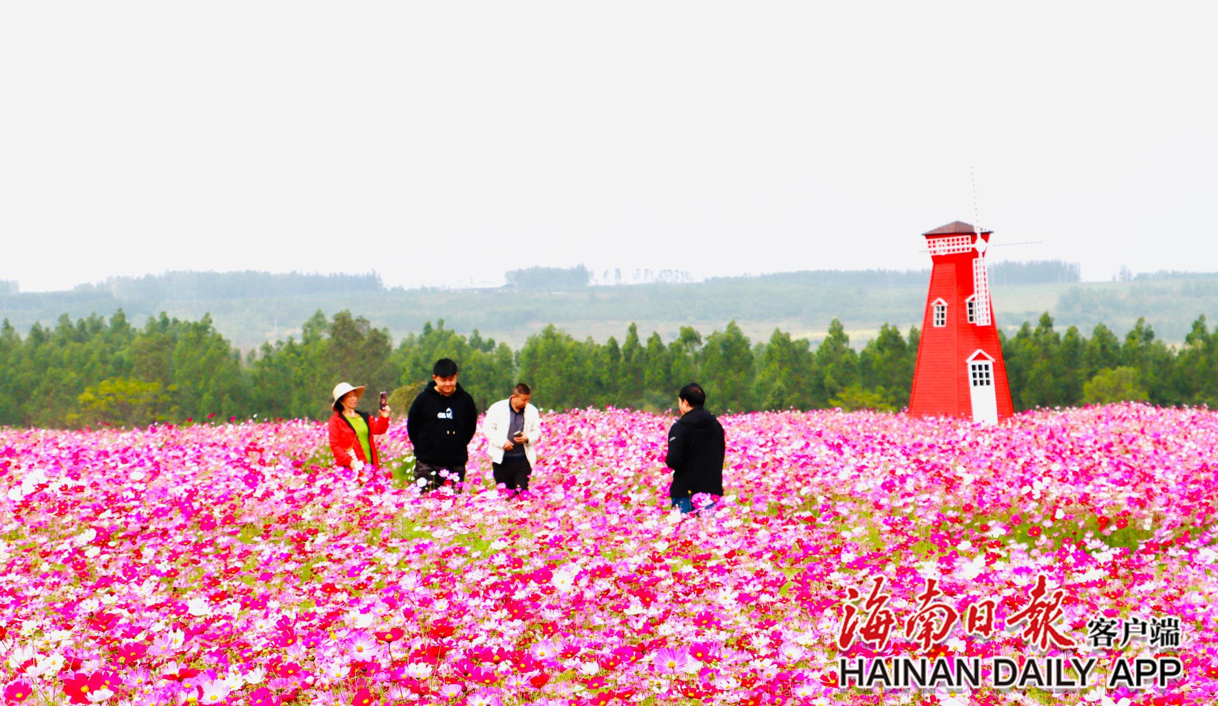 1月25日,海南日?qǐng)?bào)記者看到,格桑花開得正好,粉紅色、白色的花朵在微風(fēng)吹拂下,搖曳生姿,游客徜徉在花海中,紛紛拿起手機(jī)拍照合影。