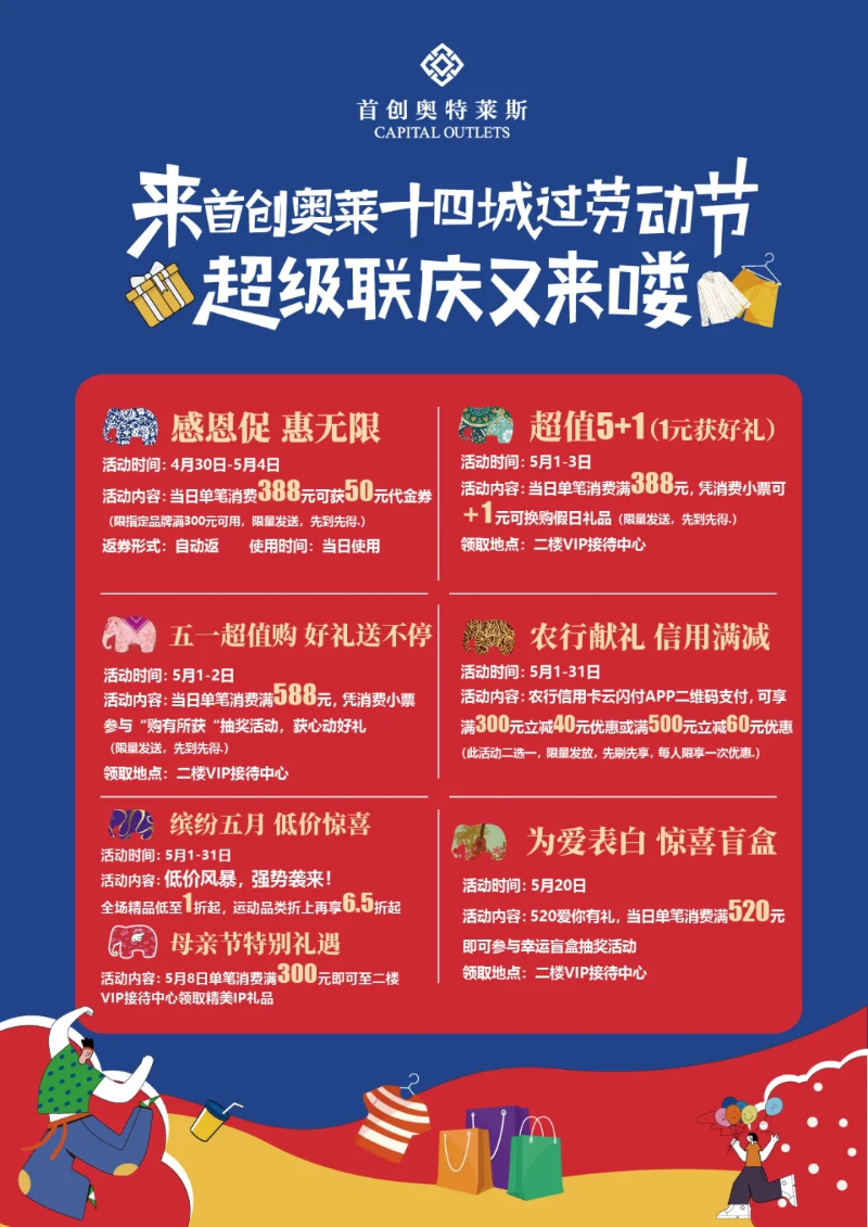 萬(wàn)寧首創(chuàng)奧特萊斯精心策劃了“五一超值購(gòu) 好禮送不?!薄案卸鞔?惠無(wú)限”“超值5+1(1元獲好禮)”等一系列主題活動(dòng),各大品牌也趁勢(shì)推出眾多折扣福利,給市民游客們提供超值的優(yōu)惠體驗(yàn)。