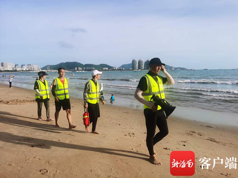 7月19日,三亞灣海岸防溺水巡邏小分隊(duì)為市民游客護(hù)航。記者沙曉峰攝