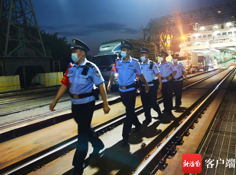海口鐵路公安處火車輪渡南港派出所警官們在巡邏。記者 汪承賢 攝
