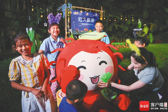 星空為幕,大地為營。10月29日傍晚,在呀諾達雨林文化旅游區的寬闊草坪上,紅火露營活動拉開帷幕。現場分為露營區、電影區和天幕區。親子、情侶、車友結伴出行,許多露營愛好者們共聚于此,共同享受愜意的時光。星空電音派對、星空電影院、自助燒烤、“DIY”紅毛丹特飲、“盲盒”禮物交換……當晚的潮玩活動內容豐富多彩,涵蓋了律動健康、親子互動、美食分享等多個方面。
