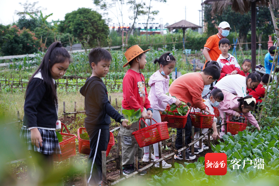 小朋友們體驗蔬菜采摘。海口市旅文局供圖