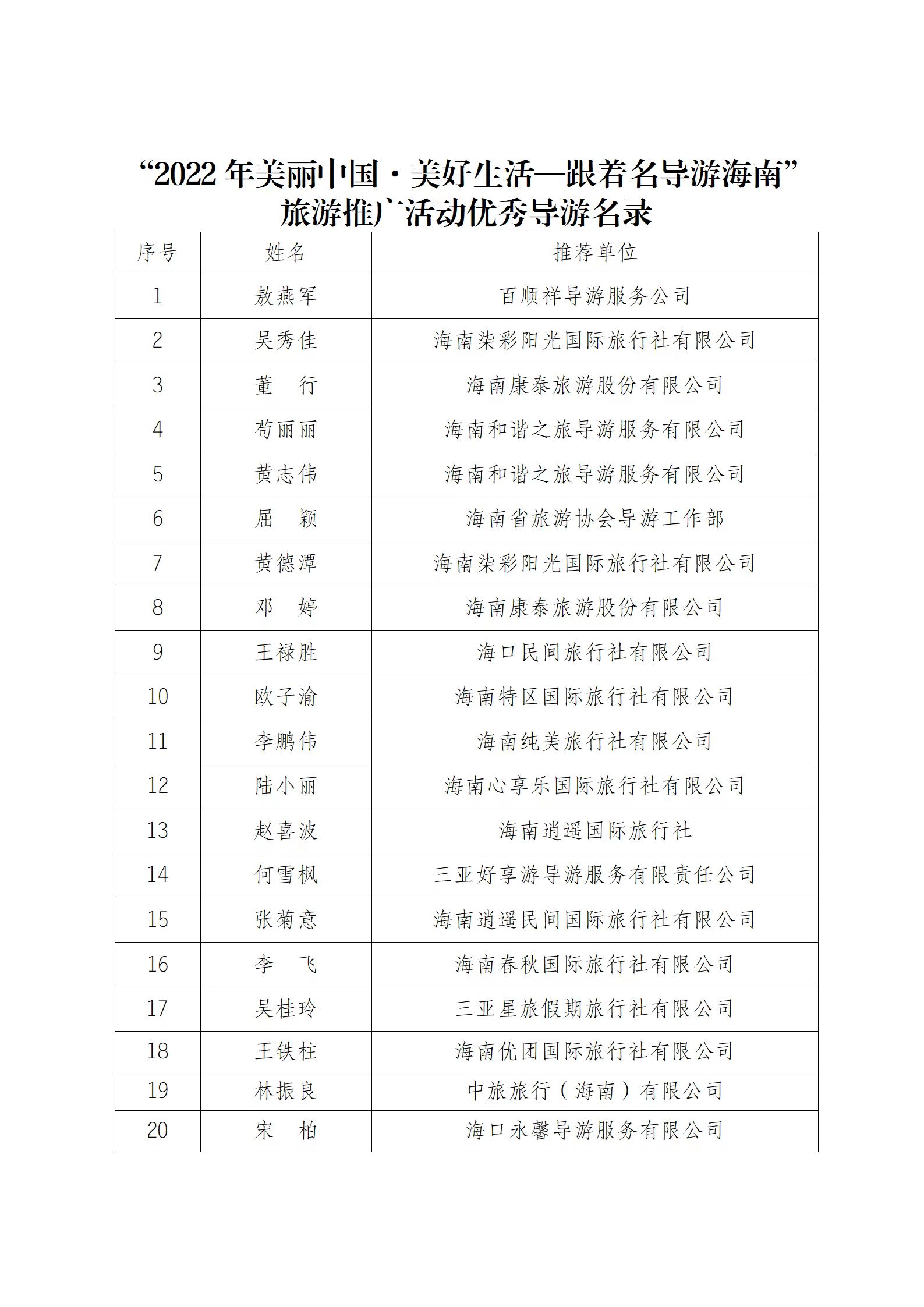 新海南客戶端、南海網、南國都市報11月8日消息(記者 丁文文)11月8日下午,由海南省旅文廳主辦,海南省旅游協會承辦的“2022年美麗中國·美好生活——跟著名導游海南”旅游推廣活動啟動儀式在??谂e行。