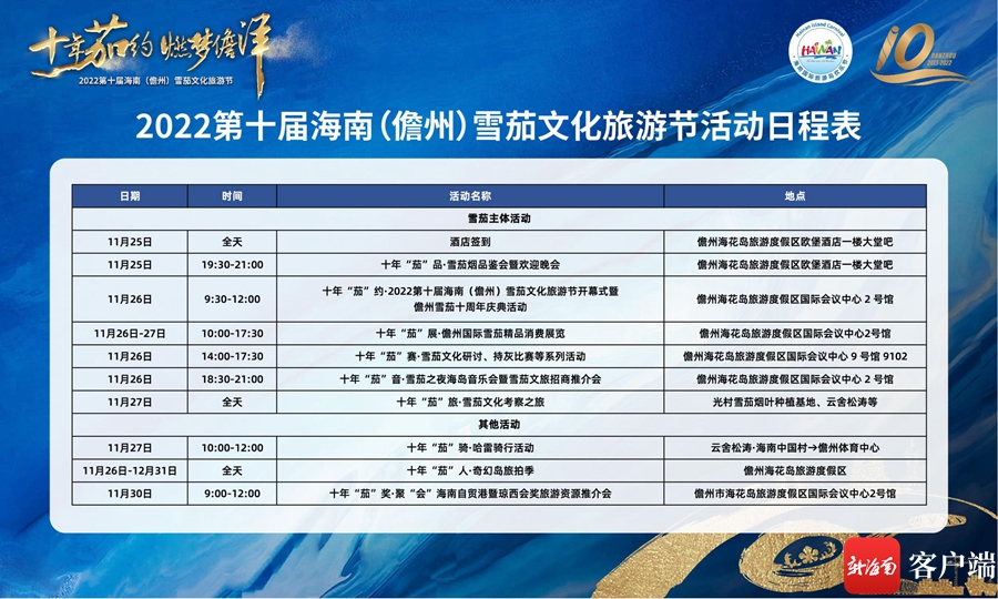 新海南客戶端、南海網(wǎng)、南國(guó)都市報(bào)11月17日消息(記者 梁振文) 2022年(第二十三屆)海南國(guó)際旅游島歡樂(lè)節(jié)即將歡樂(lè)來(lái)襲,作為本屆歡樂(lè)節(jié)系列活動(dòng)之一的2022第十屆海南(儋州)雪茄文化旅游節(jié),同時(shí)也是歡樂(lè)節(jié)儋州分會(huì)場(chǎng)的重點(diǎn)活動(dòng)。活動(dòng)將于2022年11月25日至30日在儋州海花島旅游度假區(qū)隆重舉行,其中主體活動(dòng)將在11月26日舉行。十年風(fēng)雨,筑夢(mèng)遠(yuǎn)航,從2013年至今,儋州雪茄文化旅游節(jié)已經(jīng)走過(guò)十年歷程。本屆活動(dòng)以“十年茄約、燃?jí)糍傺蟆睘橹黝},儋州雪茄文化為主線,融入精品展銷、機(jī)車騎行、浪漫旅拍、招商推介、旅游美食等元素,打造雪茄節(jié)十周年十大“雪茄+”特色主題活動(dòng),誠(chéng)邀廣大朋友前來(lái)共享儋州雪茄文化旅游盛宴。