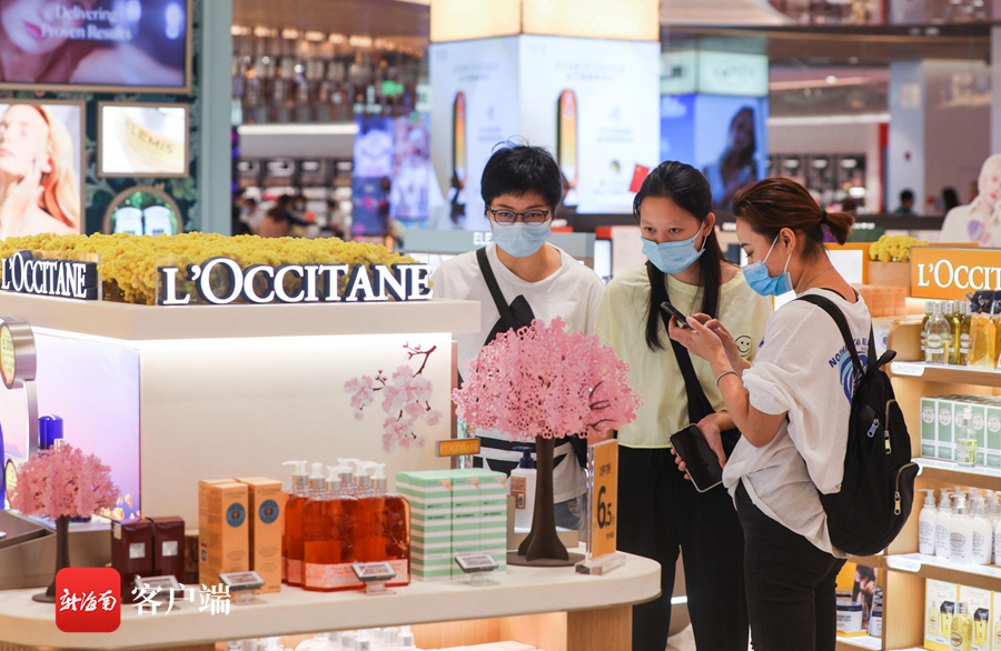 資料圖:在海口海控全球精品免稅城,顧客在選購商品。記者 李昊 攝