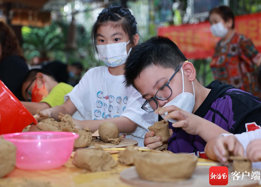 黎陶是黎族同胞傳承千年的傳統技藝,記錄著黎族同胞的生活習俗及制陶史,也因此被稱為民間文化歷史的“活化石”。走進黎家鄉情非遺文化產業園,各類陶器讓游客應接不暇。在老師的講解下,大家迫不及待地開始制作黎陶。“很喜歡黎陶培訓課程,既鍛煉孩子們的動手能力,也跟老師學到了很多黎族傳統制陶技藝的知識。”游客李女士說。