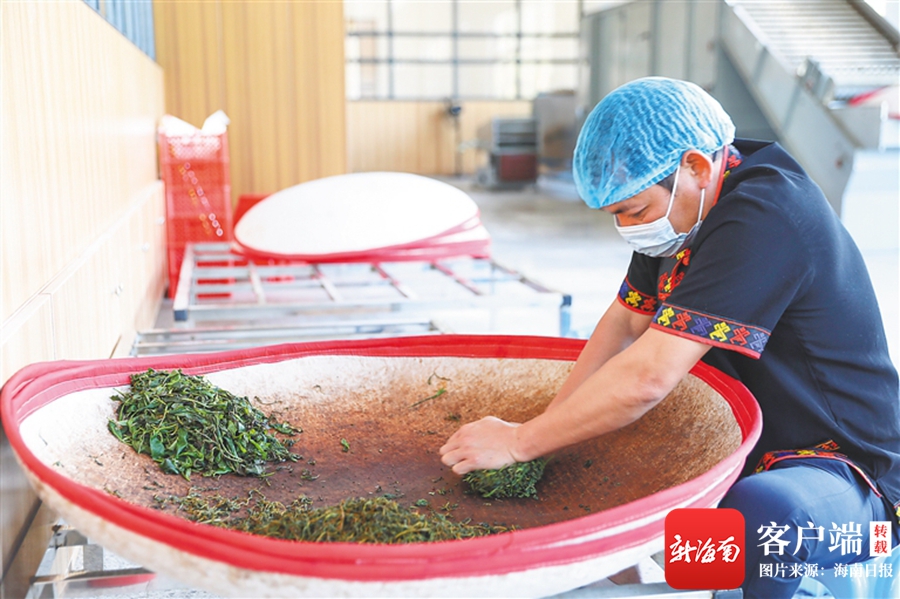 每年2月到10月的采茶期,董國豪經常開著皮卡車去村里收茶青,然后運回位于五指山市區河南東路的茶廠加工,“我們的茶廠在二樓,一樓是茶店,顧客可以上樓看制茶”。