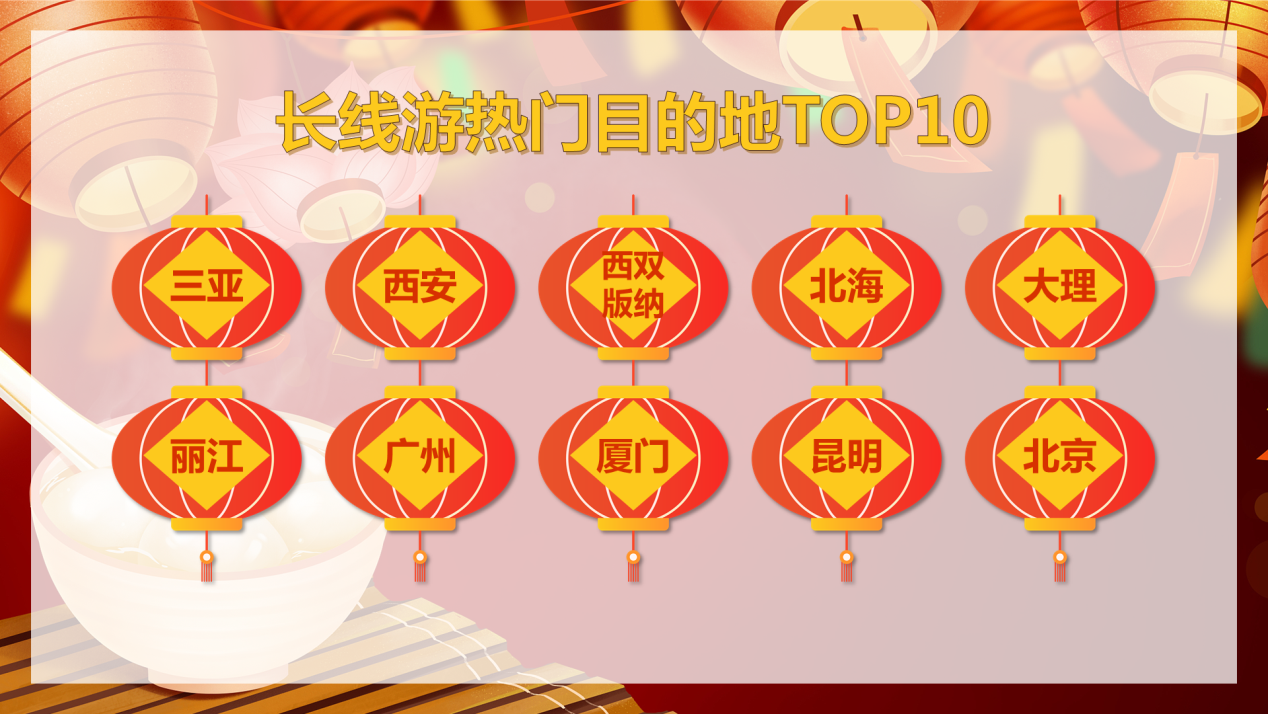 在經(jīng)歷了火熱的春節(jié)假期后,旅游消費(fèi)加速升溫。今年的元宵節(jié)又恰逢周末,有望進(jìn)一步推動(dòng)消費(fèi)需求的穩(wěn)步釋放。途牛旅游網(wǎng)數(shù)據(jù)顯示,長線游方面,熱門目的地TOP10為:三亞、西安、西雙版納、北海、大理、麗江、廣州、廈門、昆明、北京。海南延續(xù)了春節(jié)假期的出游熱度,三亞的訂單量始終保持著較高水平。