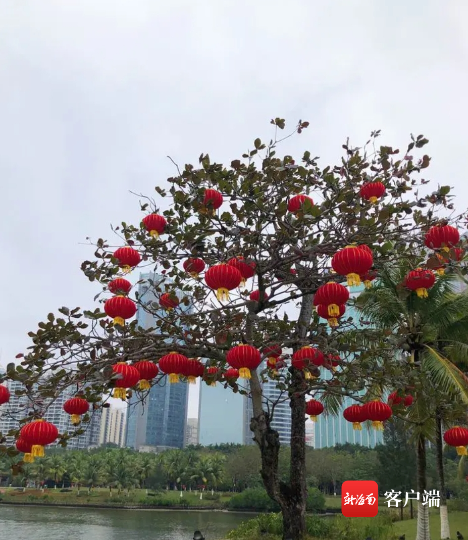 此外,在海口人民公園內也通過不少鮮花如三角梅和各類草花來“擺花布景”,還在公園的東門入口以及園區內多個重要點位掛了大大小小約500個燈籠,營造出一片祥和喜樂的節日氛圍。園區有關人員告訴記者,人民公園還有一個值得關注的特色景點,就是狀如煙花的煙花樹已經陸續開花,形色漂亮艷麗,分布在園區多個位置。