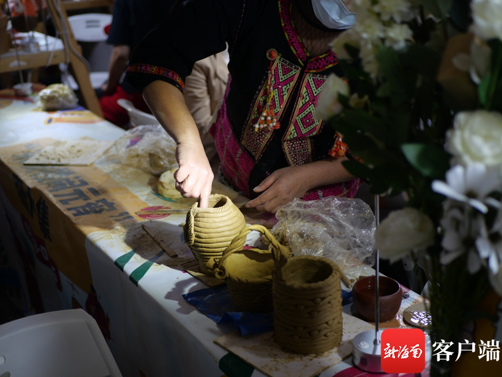 黎族姑娘在制作工藝品。記者 潘頔 攝