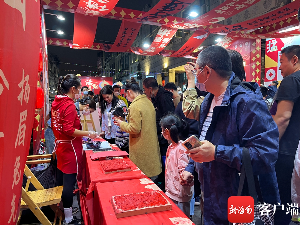 此外,騎樓老街內還推出福氣套圈、年畫版畫拓印等環節,吸引到場的市民游客參與。“通過猜燈謎,能進一步了解咱們中華民族傳統文化,如果猜對了還能兌換獎品,我覺得很有過年的儀式感,很特別。”海口市民羊明明說。