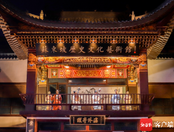 蘇東坡歷史文化藝術館位于海南儋州?;◢u1號島徽州商業(yè)街,在獨立的一座徽派小院基礎上改建而成,藝術館建筑面積上下兩層,2021年10月1日建成開放。該館的文獻整理27萬余字,近百位東坡文化學術專家參與,耗時兩年半精心打造而成,建設過程中6次調整設計方案,力求在學術的嚴謹性、文化的正統(tǒng)性、呈現(xiàn)的多樣性上精益求精。