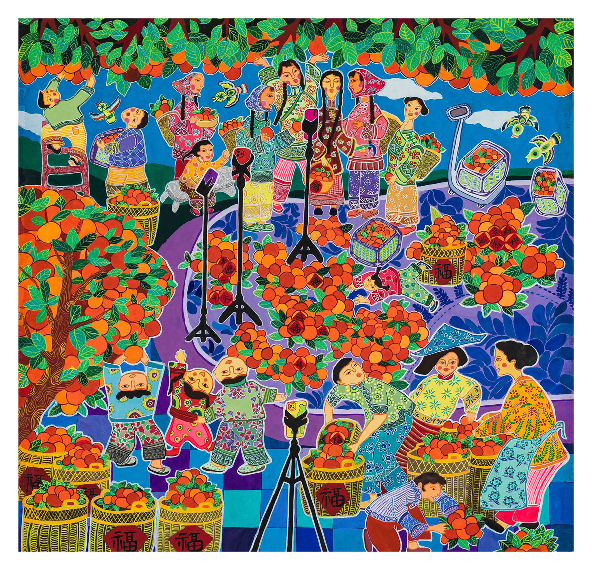 據(jù)了解,本次展覽從全國各地征集的年畫、農(nóng)民畫作品中挑選108件優(yōu)秀作品展出,其中海南畫家作品19件。展出作品分春色滿園、時代歡歌、盛世豐年三個板塊呈現(xiàn),并在海南省群眾藝術(shù)館、海南省美術(shù)家協(xié)會、海南省南方美術(shù)研究院數(shù)字平臺進(jìn)行同步展示,讓喜慶氛圍延續(xù)下去。