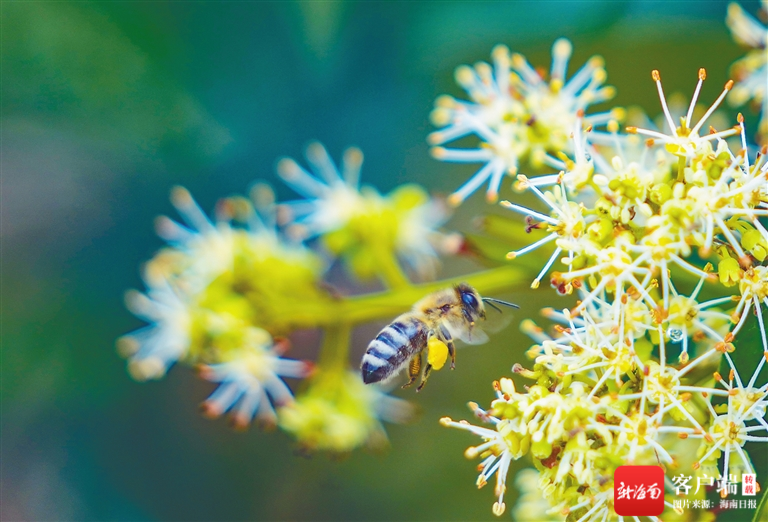 蜜蜂正在荔枝花上采蜜。海南日?qǐng)?bào)記者 陳元才 攝