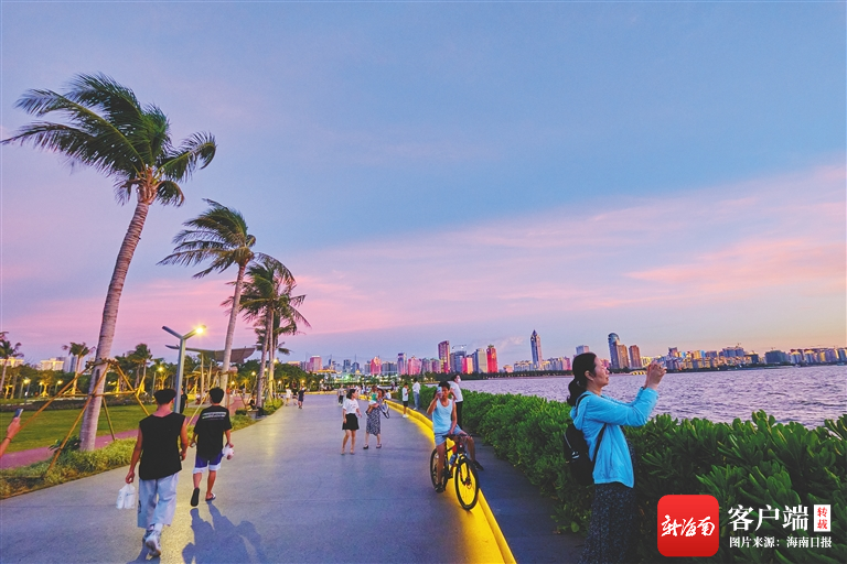 市民游客紛紛打卡海口灣外灘。??谑新梦木止﹫D