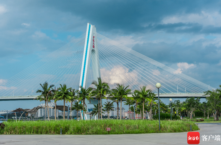 ??跒?,椰樹與世紀大橋相互映襯,別有一番椰城韻味。新海南客戶端記者 李昊 攝