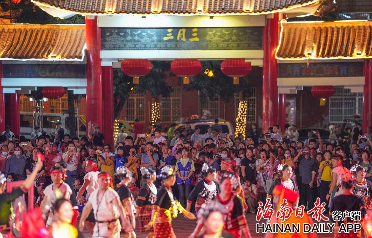 4月17日,在五指山市通什鎮的三月三廣場,黎族群眾持火把跳起共同舞。海南日報記者 李天平 攝