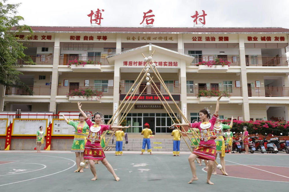 資料圖:浪論村村民為游客表演黎族風情歌舞。記者 陳元才 攝