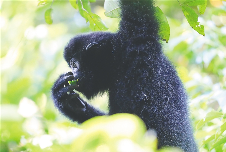 正在進(jìn)食的海南長臂猿。海南日報(bào)記者 李天平 攝