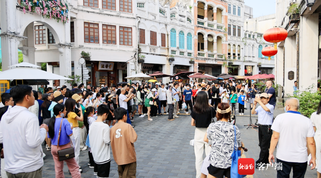 龍華非遺文創(chuàng)展、街藝快閃、街頭藝人評(píng)選賽、瓊劇非遺文化戲院公益惠民演出……4月30日,??隍T樓老街處處洋溢著藝術(shù)氣息。