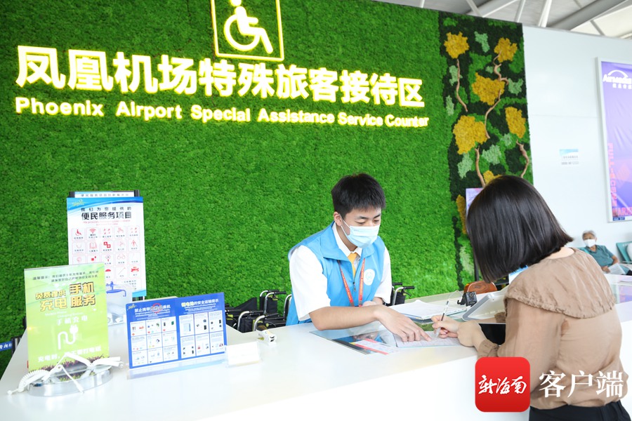 機(jī)場工作人員為旅客提供服務(wù)。三亞鳳凰機(jī)場供圖