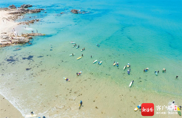 游客在萬(wàn)寧石梅灣沖浪。海南日?qǐng)?bào)記者 李天平 攝