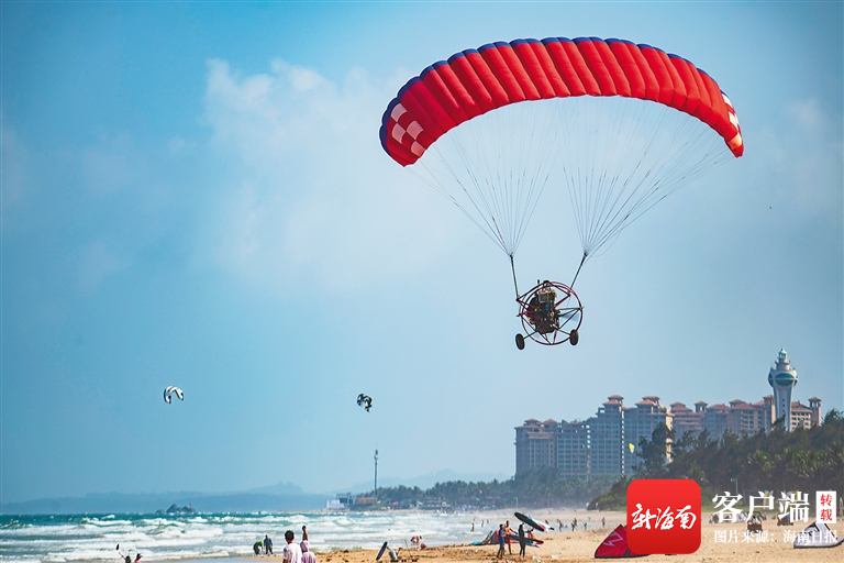 游客在瓊海博鰲海濱體驗(yàn)滑翔傘項(xiàng)目。特約記者 蒙鐘德 攝