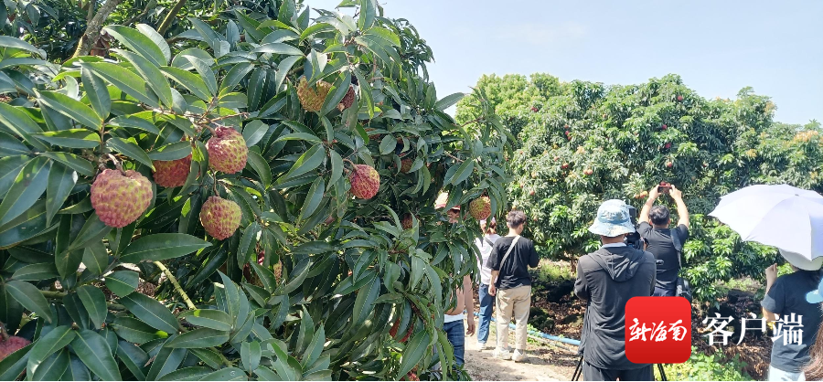 網絡主播和游客等入園參觀等待上市的火山荔枝。記者 王康景 攝