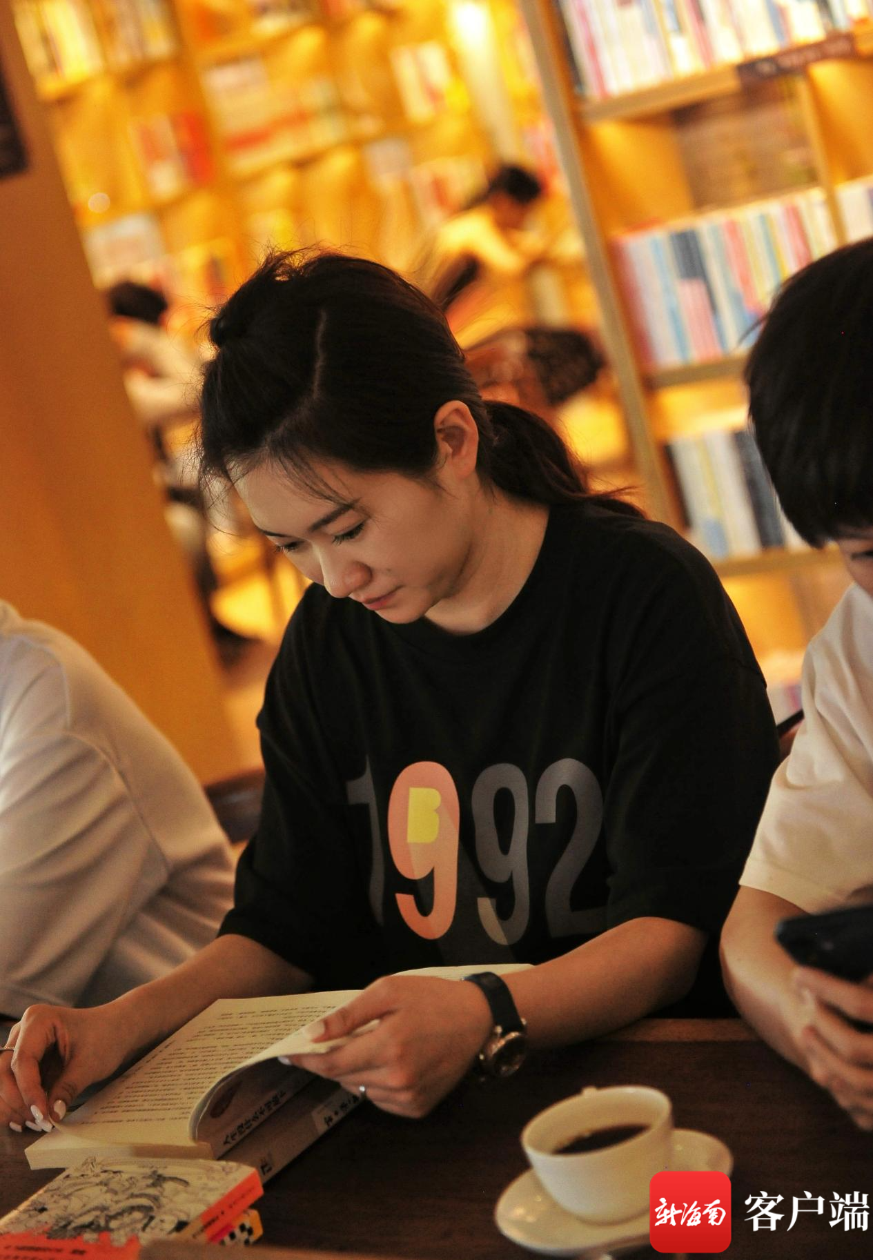 ?臺球明星韓雨在鳳凰九里書屋看書。賽事組委會供圖