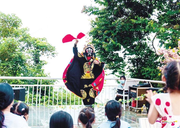 川劇變臉表演吸引了眾多市民游客圍觀。