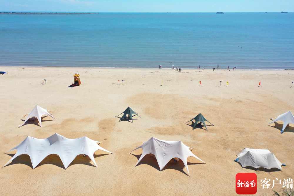 假日海灘為洗龍水的市民準備的帳篷。記者 汪承賢 攝