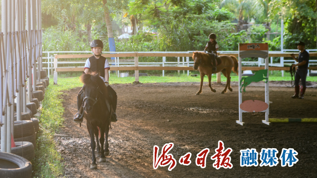 咖啡莊園旁的“懂宿”馬術(shù)主題民宿里,馬場(chǎng)上兩名穿戴馬術(shù)裝備的少年正在教練的帶領(lǐng)下體驗(yàn)騎乘。