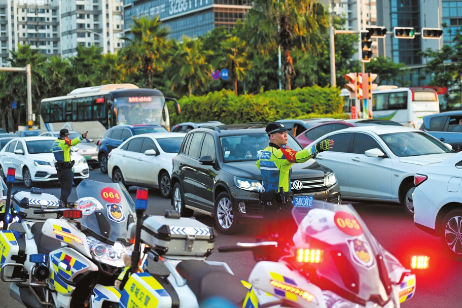 演唱會場館外圍,交警忙著疏導交通。海口日報記者 石中華 攝